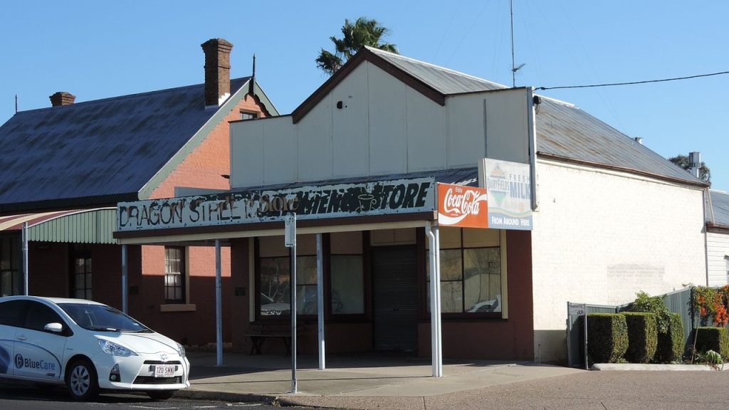 Leonard’s Trading store had a general store in the old brick shop. In the attached building behind was a coffee shop and restaurant, with function rooms.